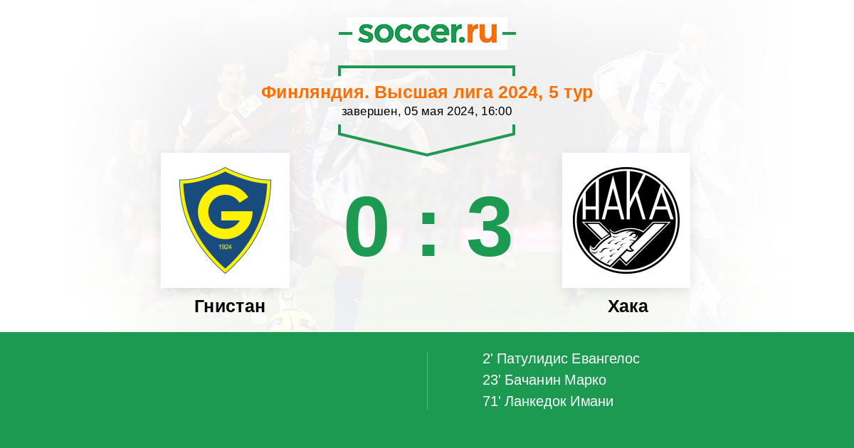 Протокол матча Гнистан против Хака