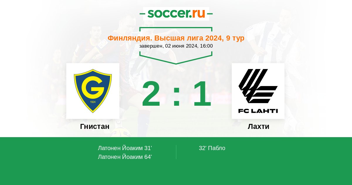 31' (1:0) Латонен Йоаким (10) (Энкеруд Йонас (9))