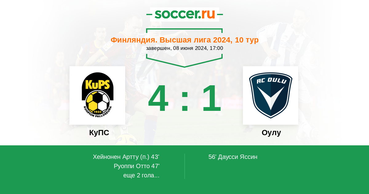 Протокол матча КуПС против Оулу