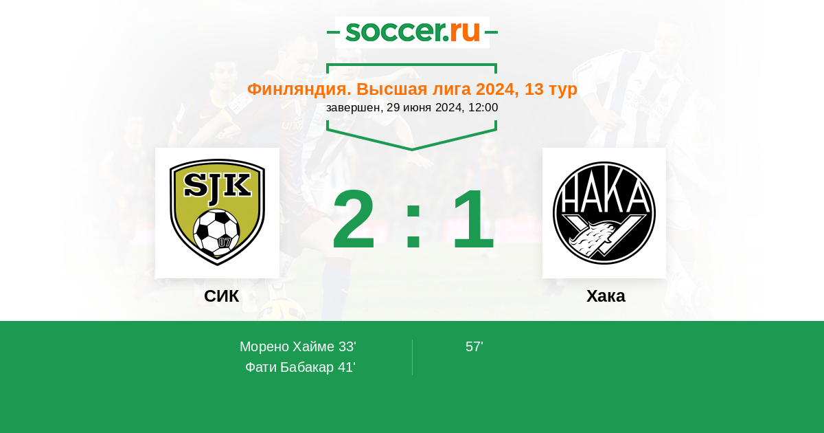 Протокол матча СИК против Хака