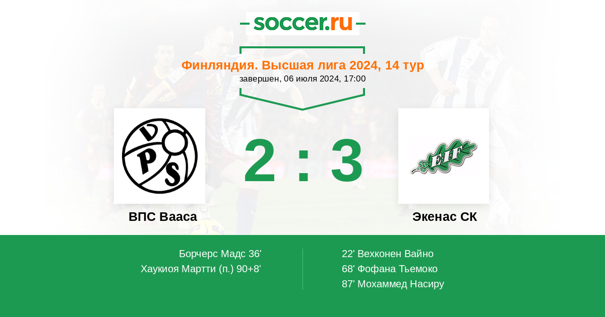 90+8' (2:3) Хаукиоя Мартти (19)