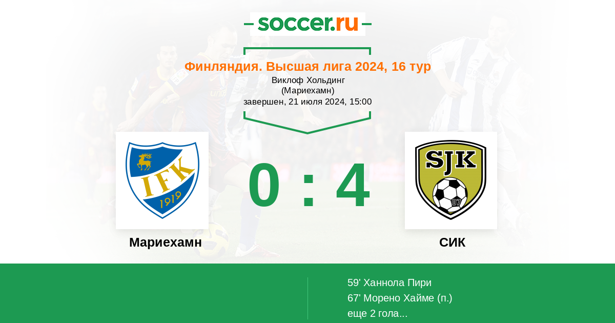 Протокол матча Мариехамн против СИК