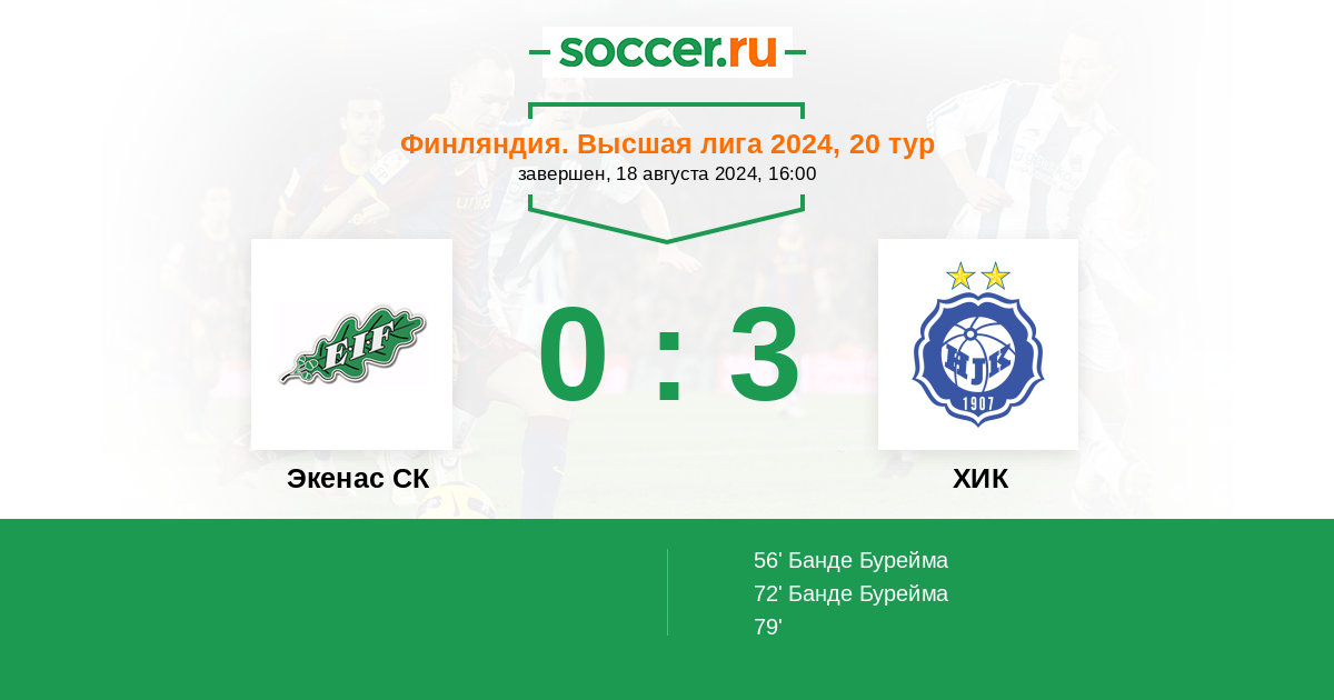 Протокол матча Экенас СК против ХИК