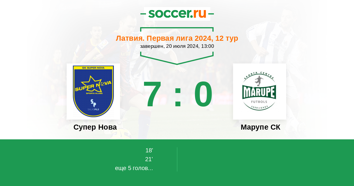 Протокол матча Супер Нова против Марупе СК