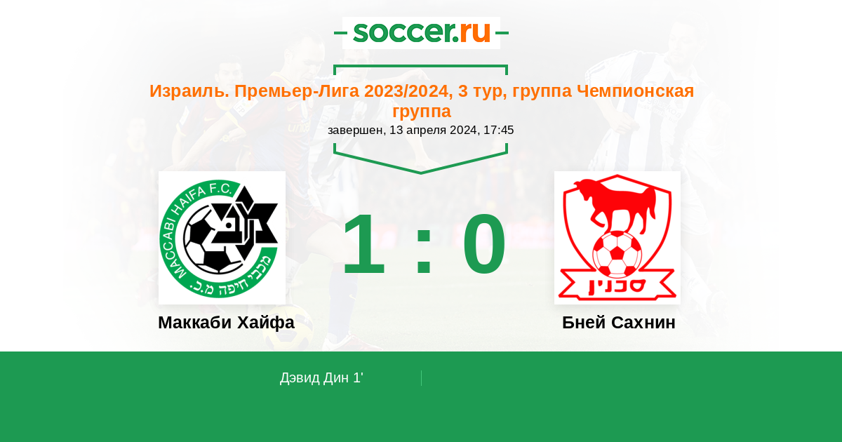 Протокол матча Маккаби Хайфа против Бней Сахнин