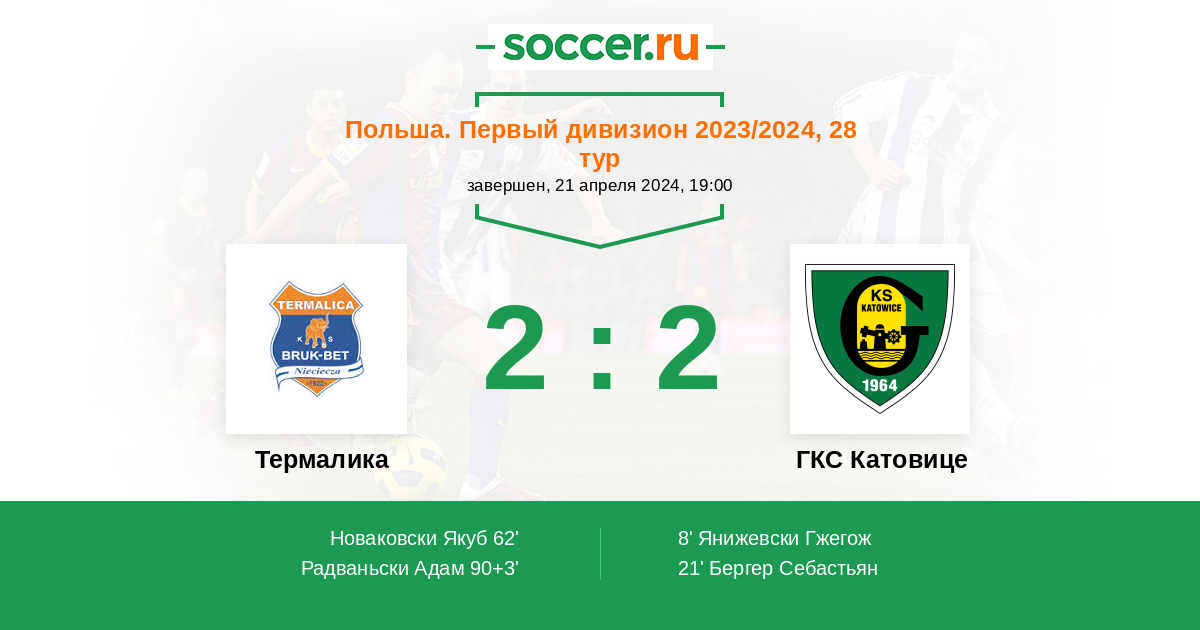 Протокол матча Термалика против ГКС Катовице
