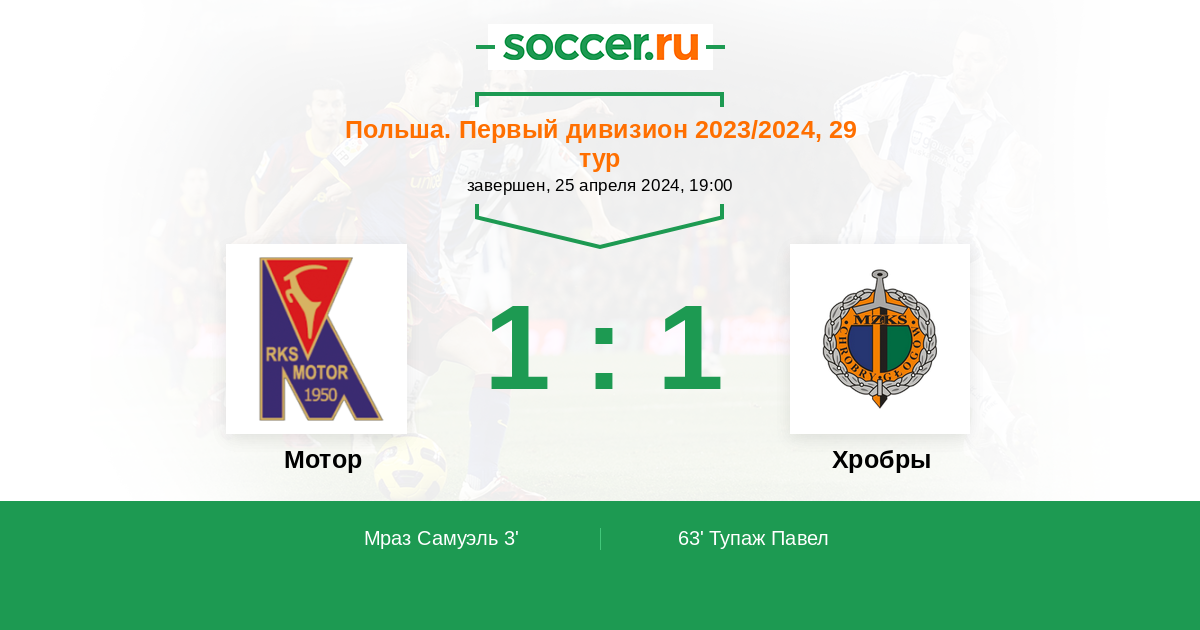 Протокол матча Мотор против Хробры