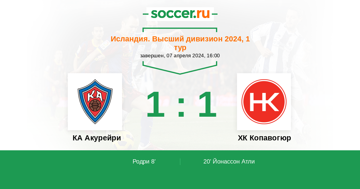 8' (1:0) Родри (4) (Адальстейнссон Бьярни (77))