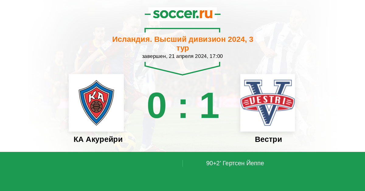 Протокол матча КА Акурейри против Вестри