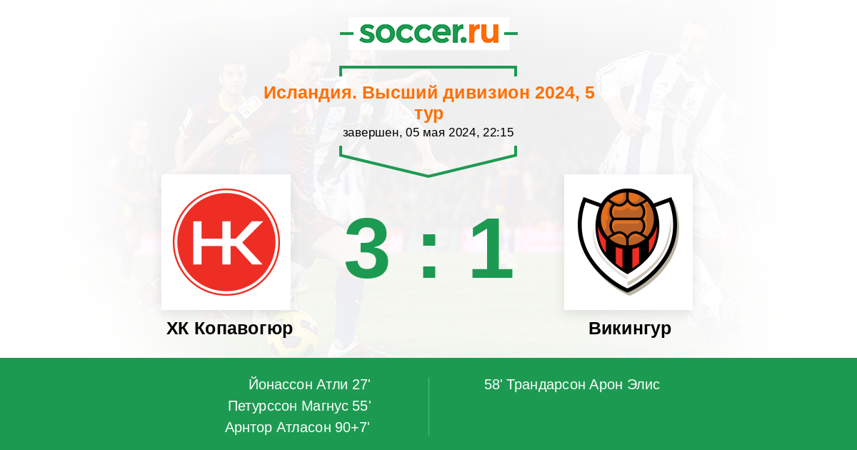90+7' (3:1) Арнтор Атласон (8)
