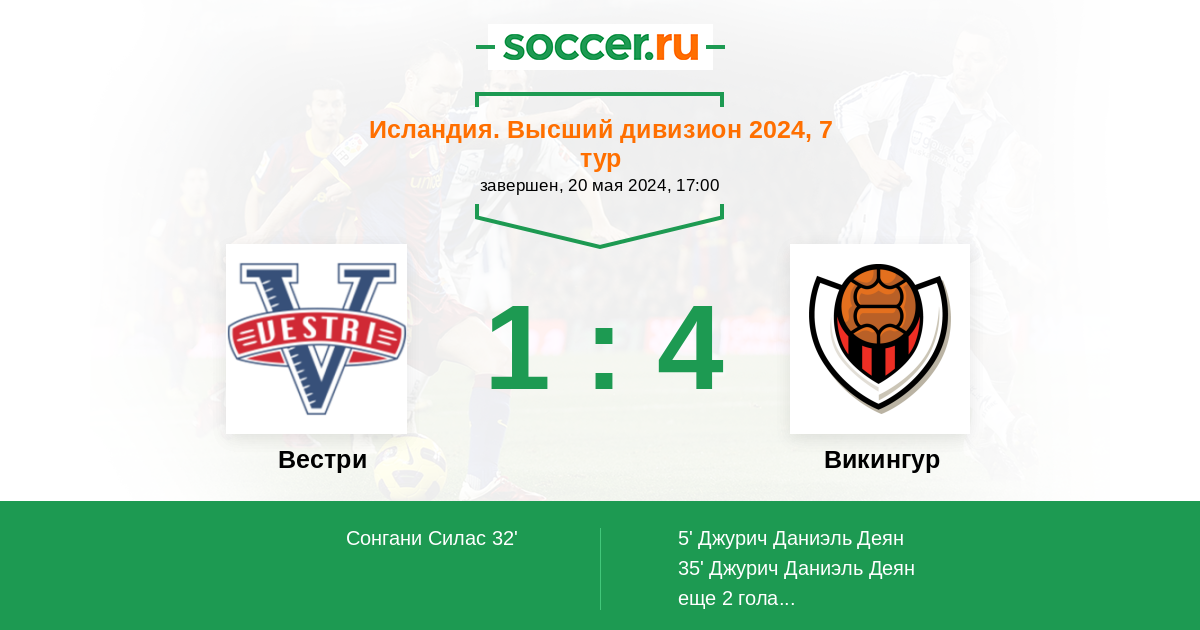 Протокол матча Вестри против Викингур