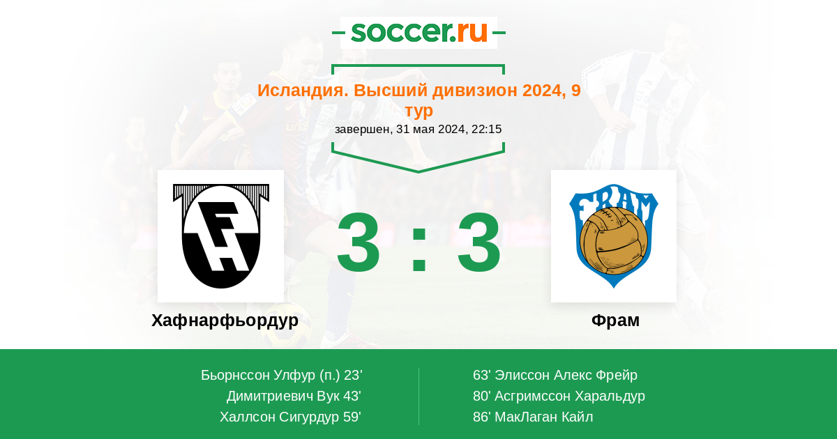 63' (3:1) Элиссон Алекс Фрейр (71) (Магнуссон Гудмундур (7))
