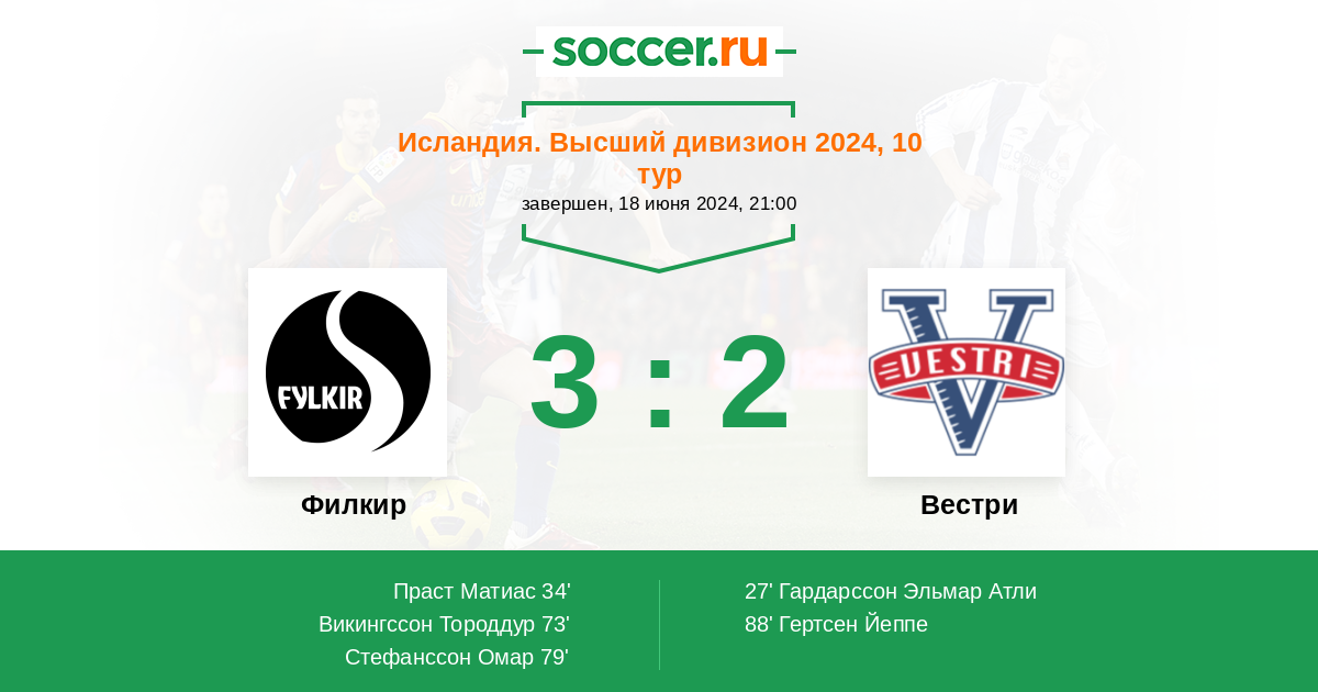 73' (2:1) Викингссон Тороддур (25) (Аспорссон Арнор (27))