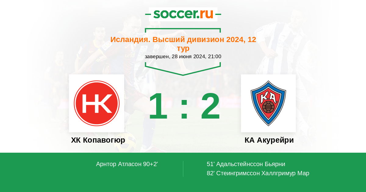 Гол90+2' (1:2) Арнтор Атласон (8) (Буркнасон Бирнир Бреки (19))