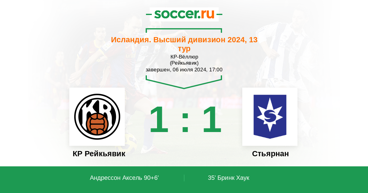 Протокол матча КР Рейкьявик против Стьярнан