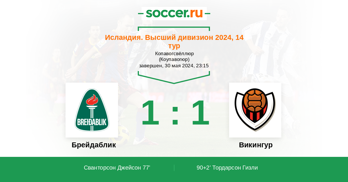 90+2' (1:1) Тордарсон Гизли (11) (Гудьонссон Хельги (9))