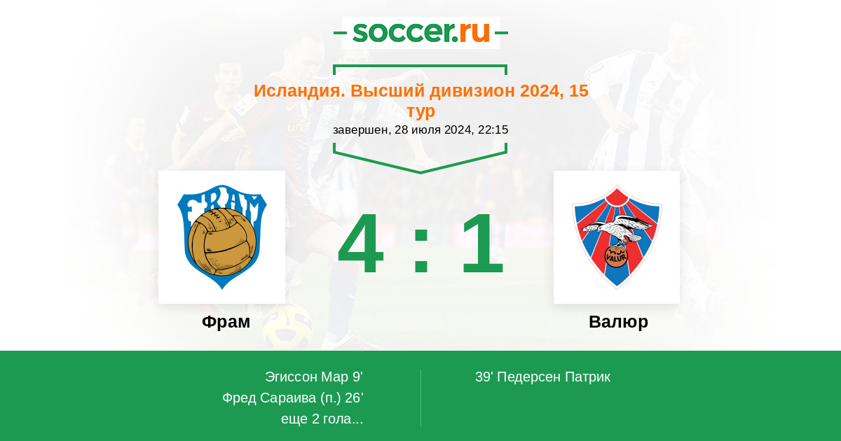 32' (3:0) Шопара Кенни (9) (Элиссон Алекс Фрейр (71))