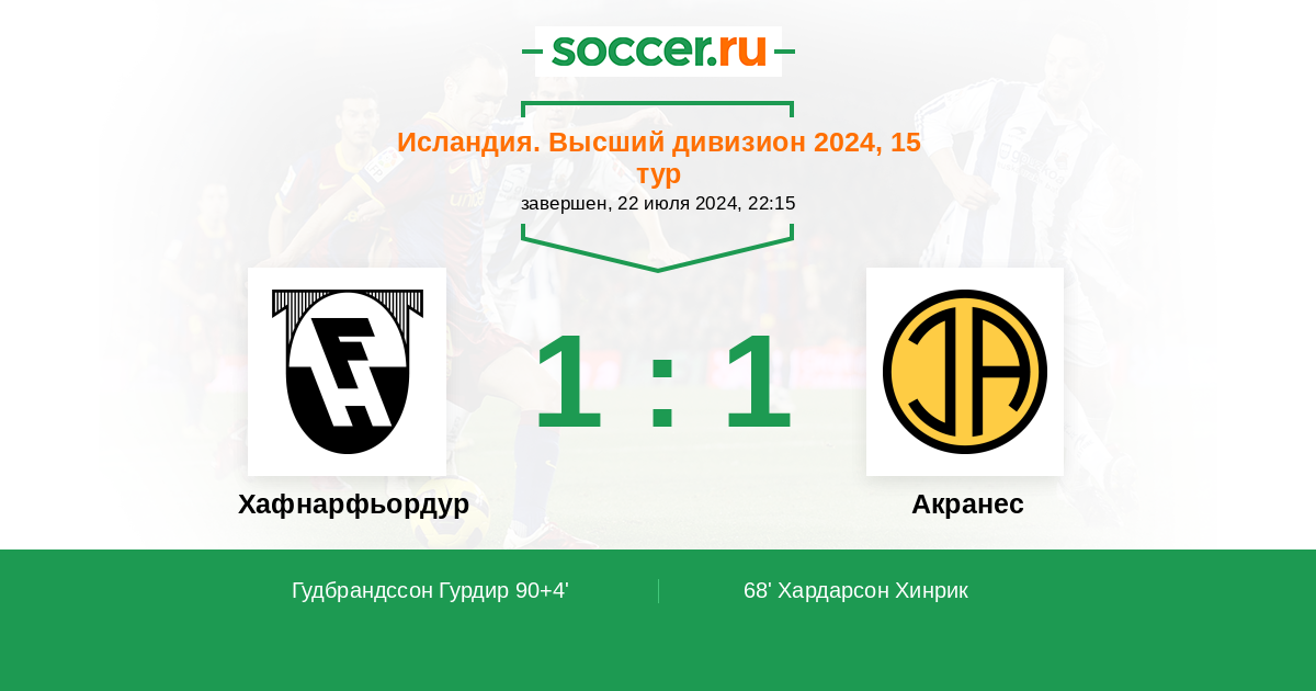 Протокол матча Хафнарфьордур против Акранес