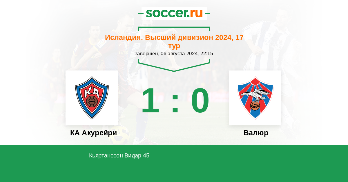 45' (1:0) Кьяртанссон Видар (23) (Хафстейнссон Даниэль (7))