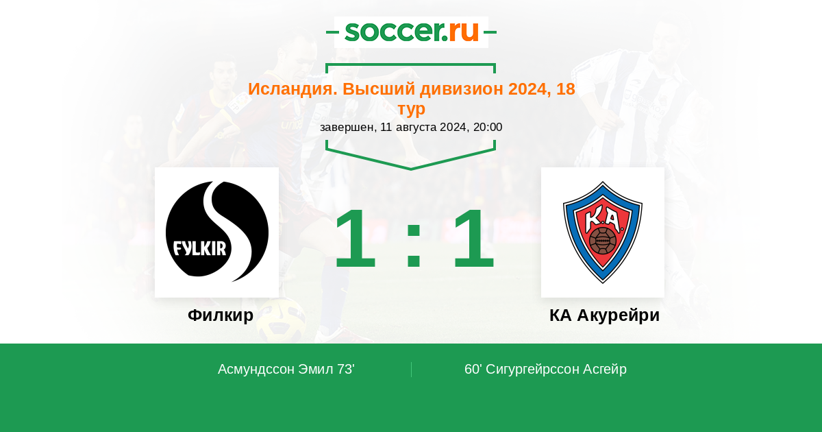 Протокол матча Филкир против КА Акурейри