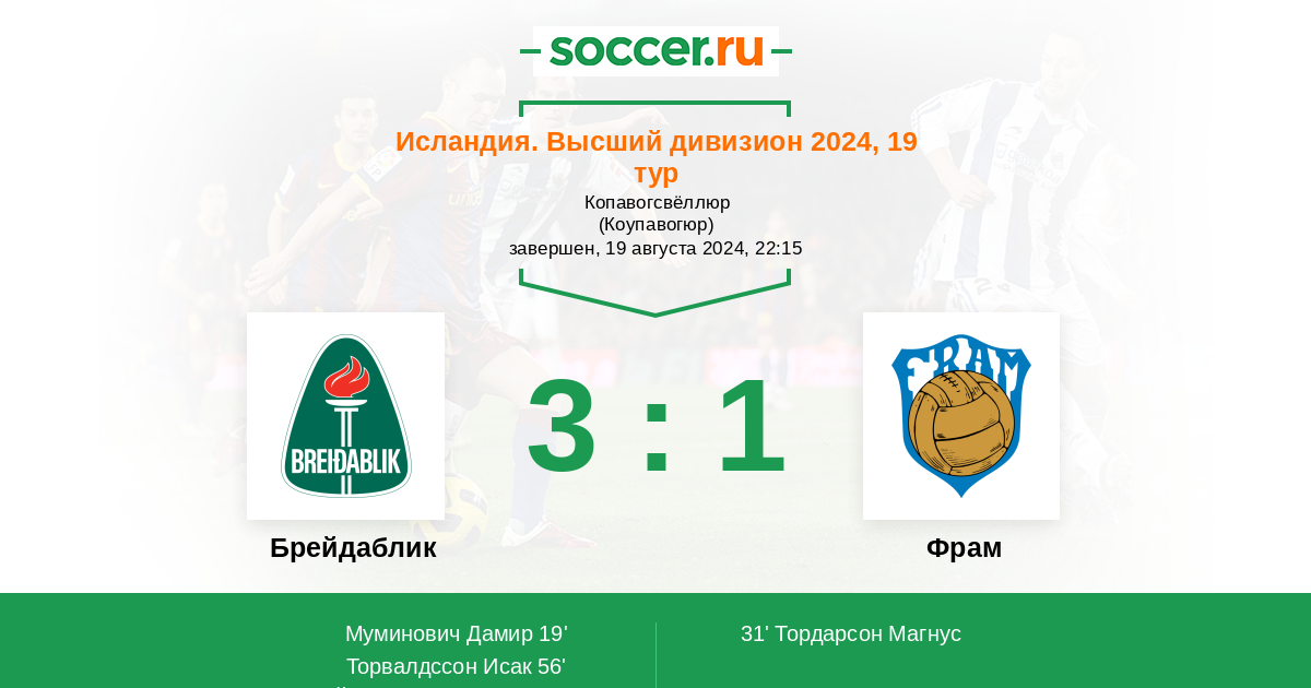 19' (1:0) Муминович Дамир (4) (Йонссон Кристинн (19))