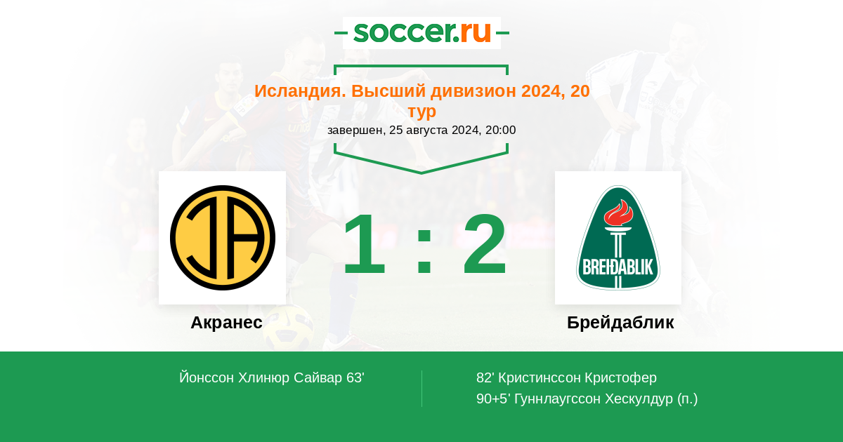 63' (1:0) Йонссон Хлинюр Сайвар (4) (Валь Йоханнес (3))