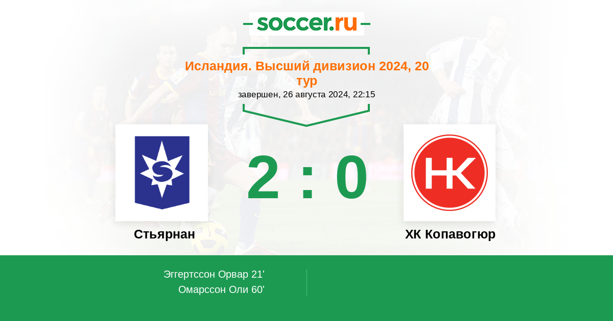 60' (2:0) Омарссон Оли (4) (Торкелссон Роберт (80))