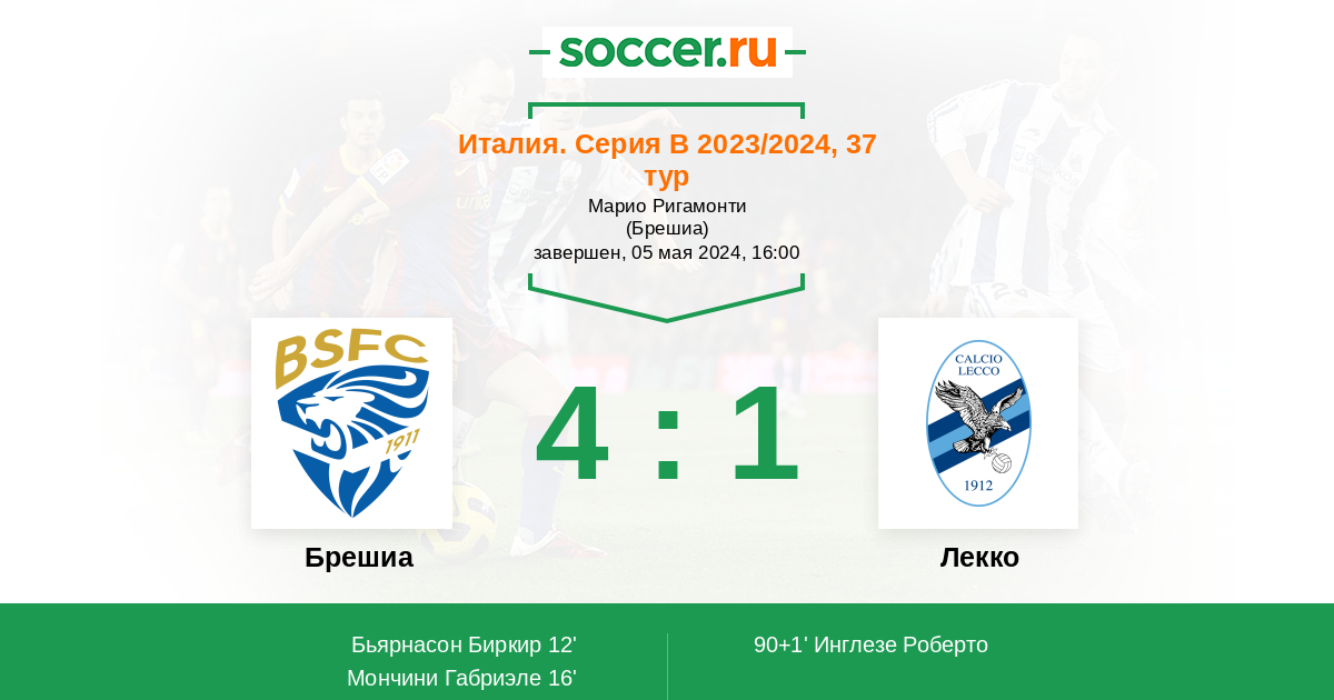 Протокол матча Брешиа против Лекко