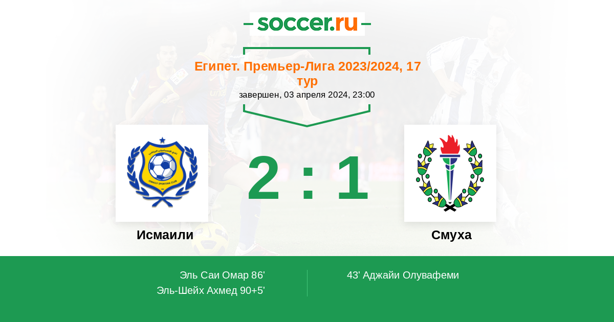 86' (1:1) Эль Саи Омар (33) (Эль-Шейх Ахмед (7))