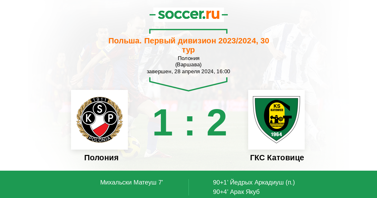 Протокол матча Полония против ГКС Катовице