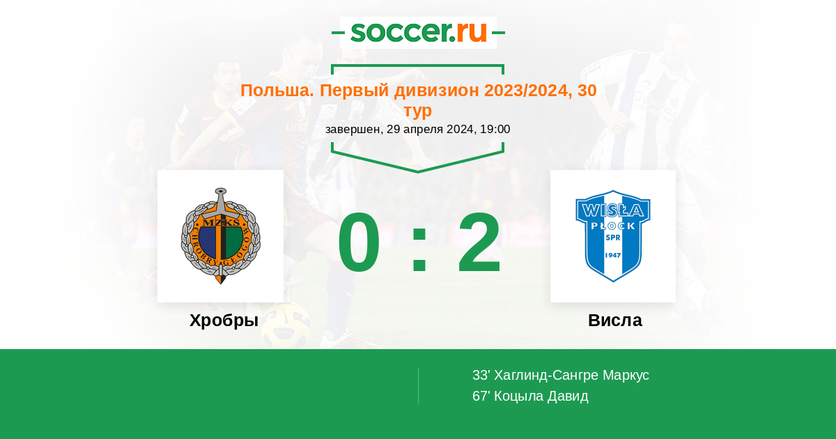 Протокол матча Хробры против Висла