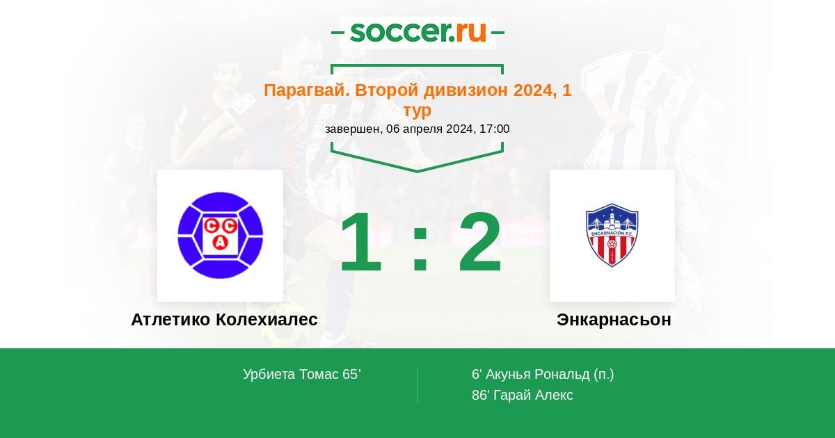 Протокол матча Атлетико Колехиалес против Энкарнасьон