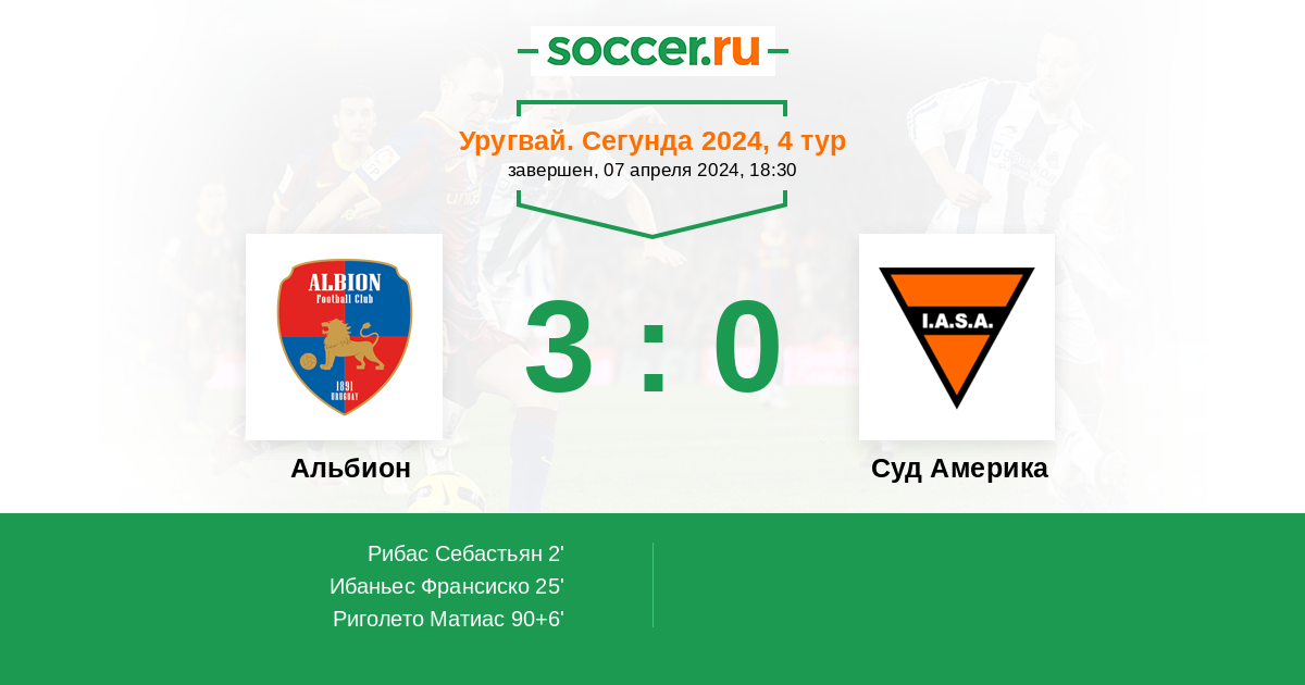Протокол матча Альбион против Суд Америка
