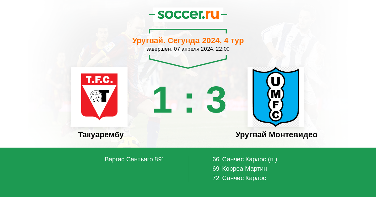 Протокол матча Такуарембу против Уругвай Монтевидео