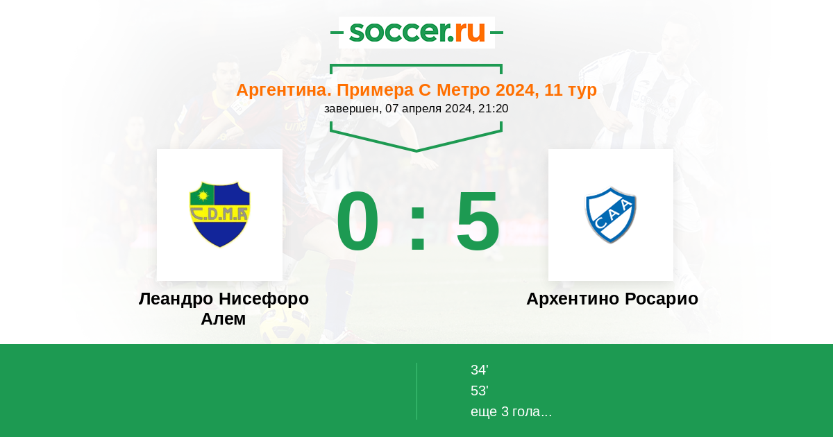 Протокол матча Леандро Нисефоро Алем против Архентино Росарио