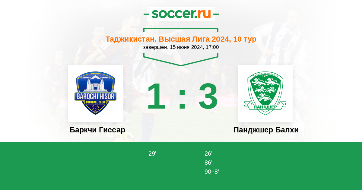 Протокол матча Баркчи Гиссар против Панджшер Балхи