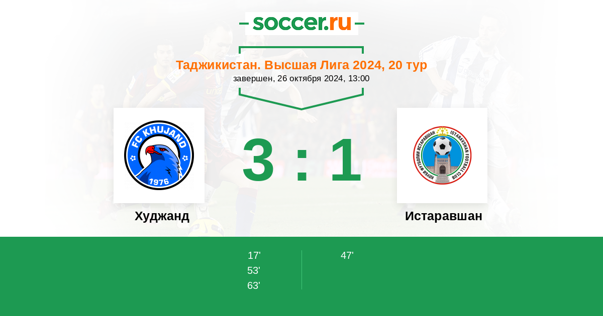 Протокол матча Худжанд против Истаравшан