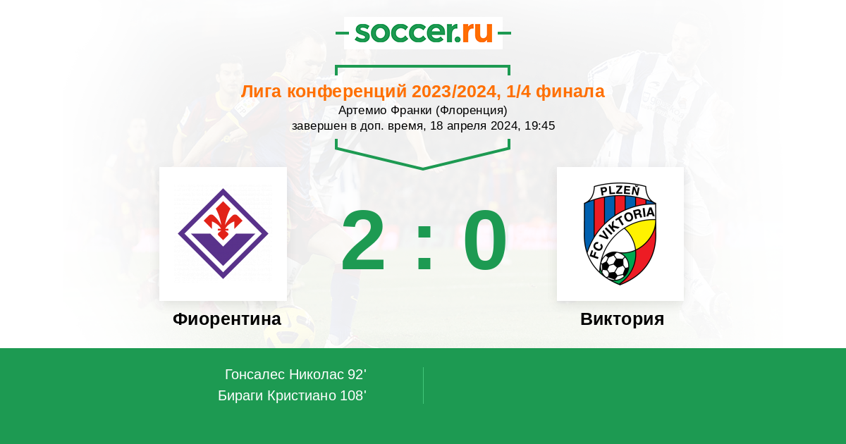 В предстоящем ответном матче 1/4 финала Лиги Конференций между командами Фиорентина Флоренция Италия и Виктория Пльзень Чехия, более чем явным фаворитом на победу является команда хозяев Фиорентина Флоренция Италия .
