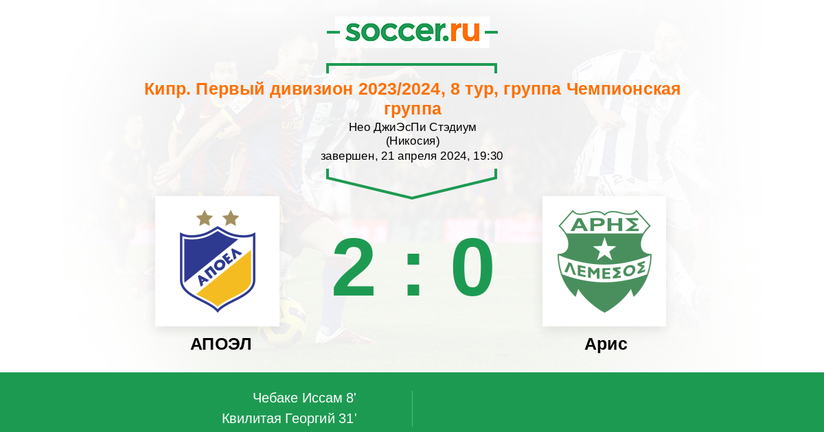 Протокол матча АПОЭЛ против Арис