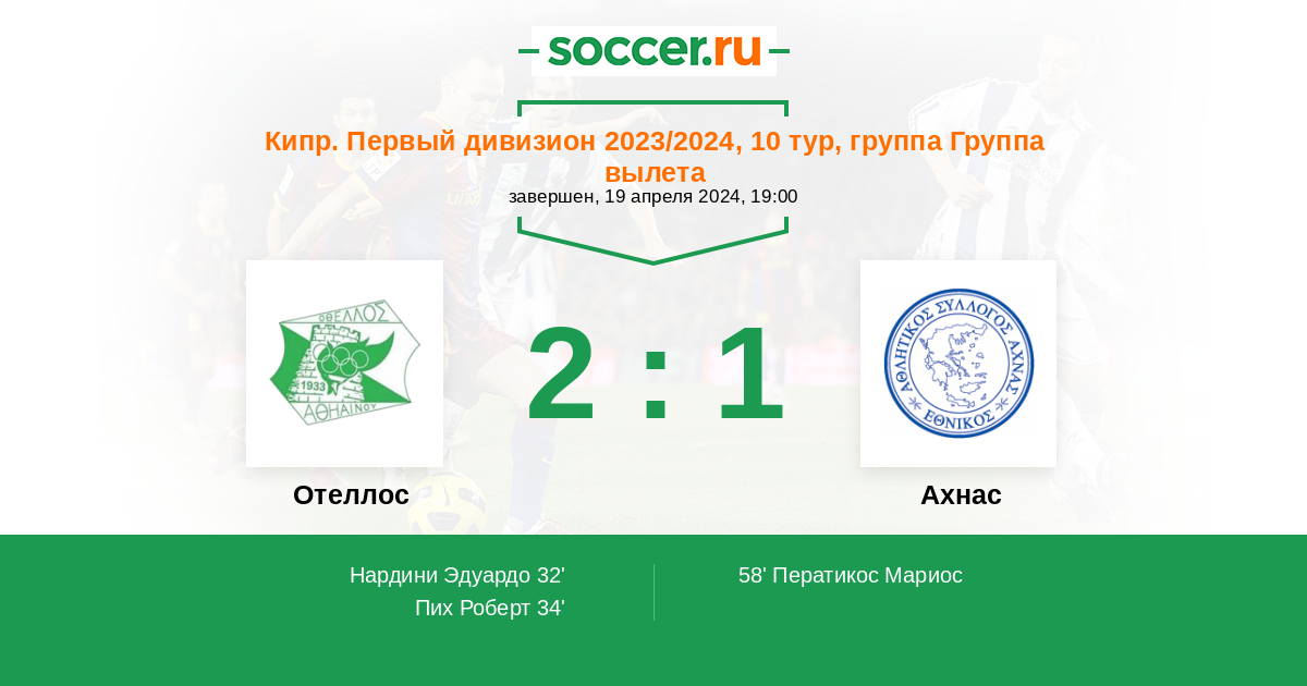 Протокол матча Отеллос против Ахнас