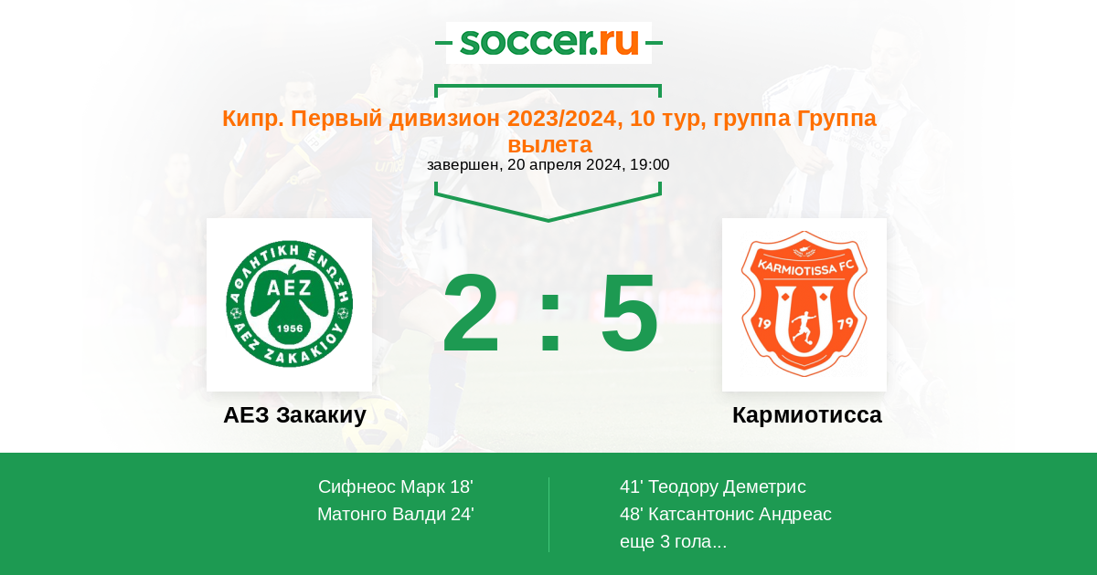 Протокол матча АЕЗ Закакиу против Кармиотисса