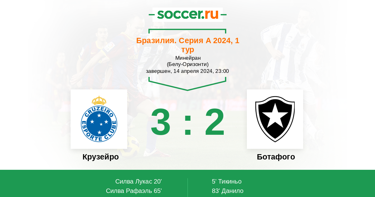 Протокол матча Крузейро против Ботафого