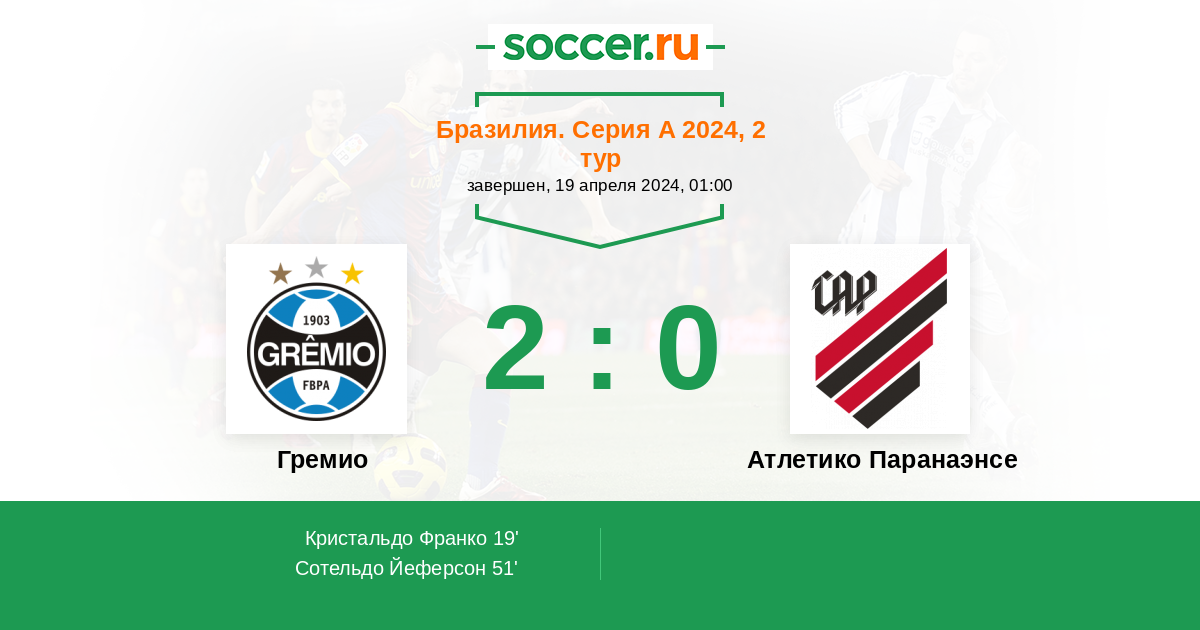 Протокол матча Гремио против Атлетико Паранаэнсе