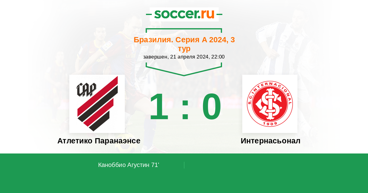 Протокол матча Атлетико Паранаэнсе против Интернасьонал