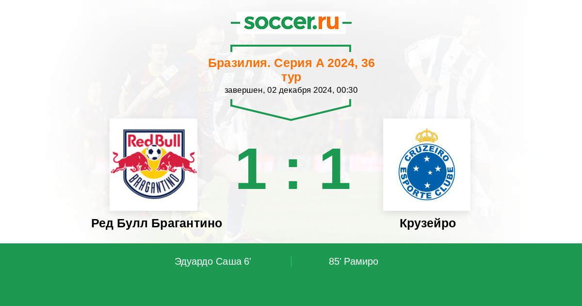 Протокол матча Ред Булл Брагантино против Крузейро