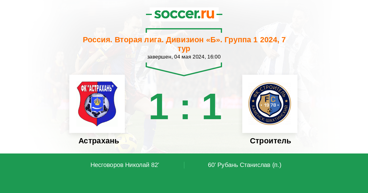 Протокол матча Астрахань против Строитель