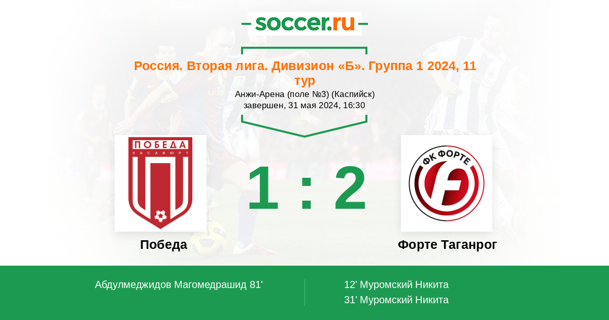 Протокол матча Победа против Форте Таганрог