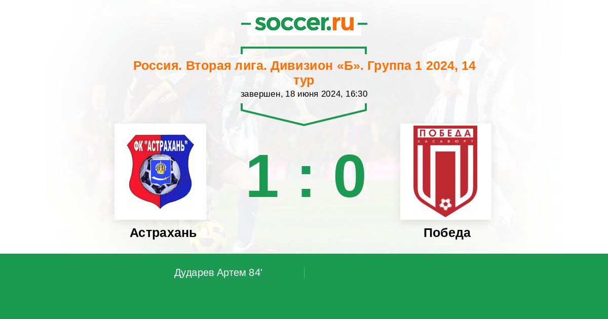 Протокол матча Астрахань против Победа