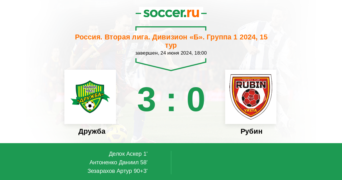 Протокол матча Дружба против Рубин