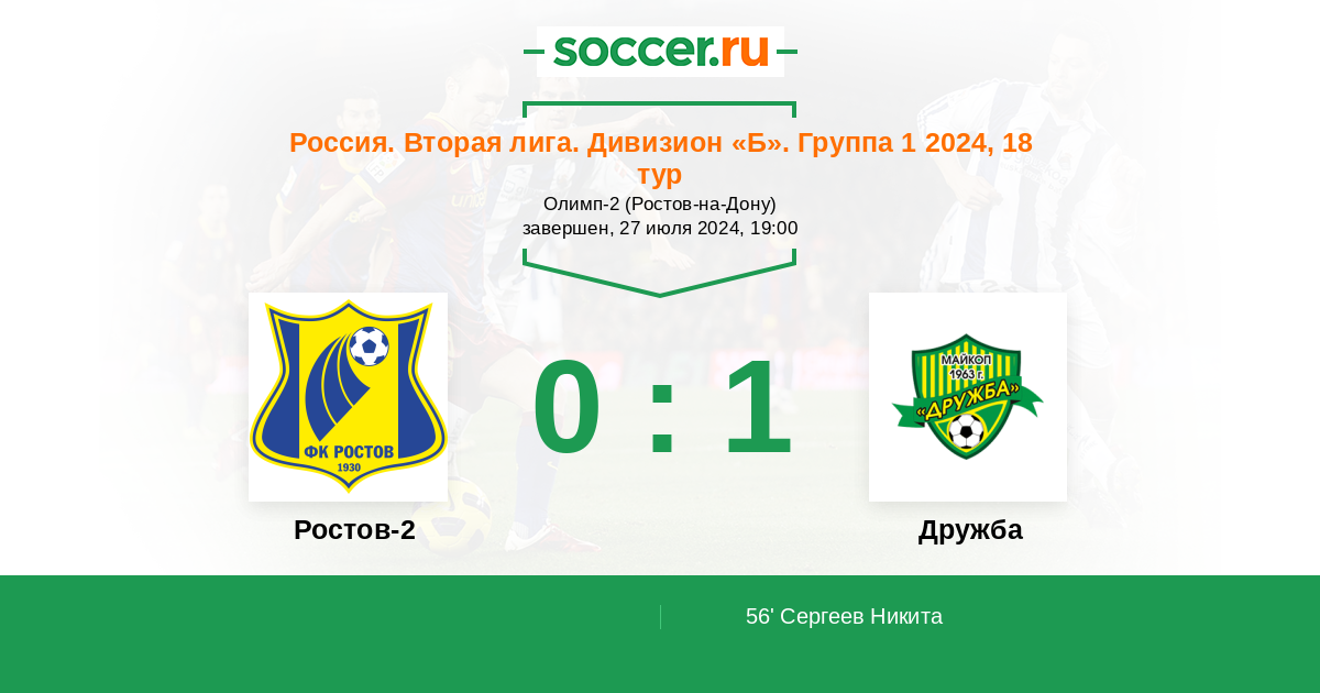 Протокол матча Ростов-2 против Дружба